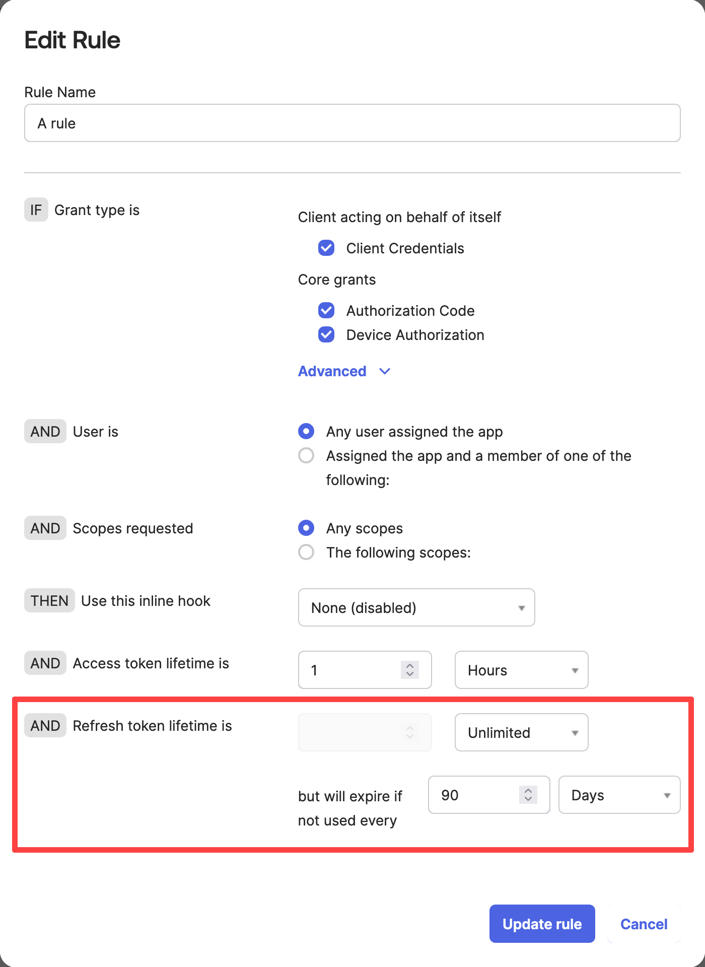 You can create a new Authorization Server or use the existing one here. Create an Access Policy for the Authorization Server and set the refresh token lifetime to unlimited.